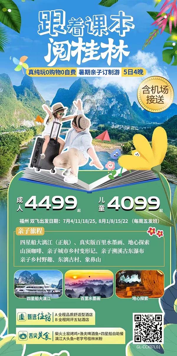 【暑期•桂林亲子游】跟着课本阅桂林5日双飞游(桂林山水精灵梦·五日游)